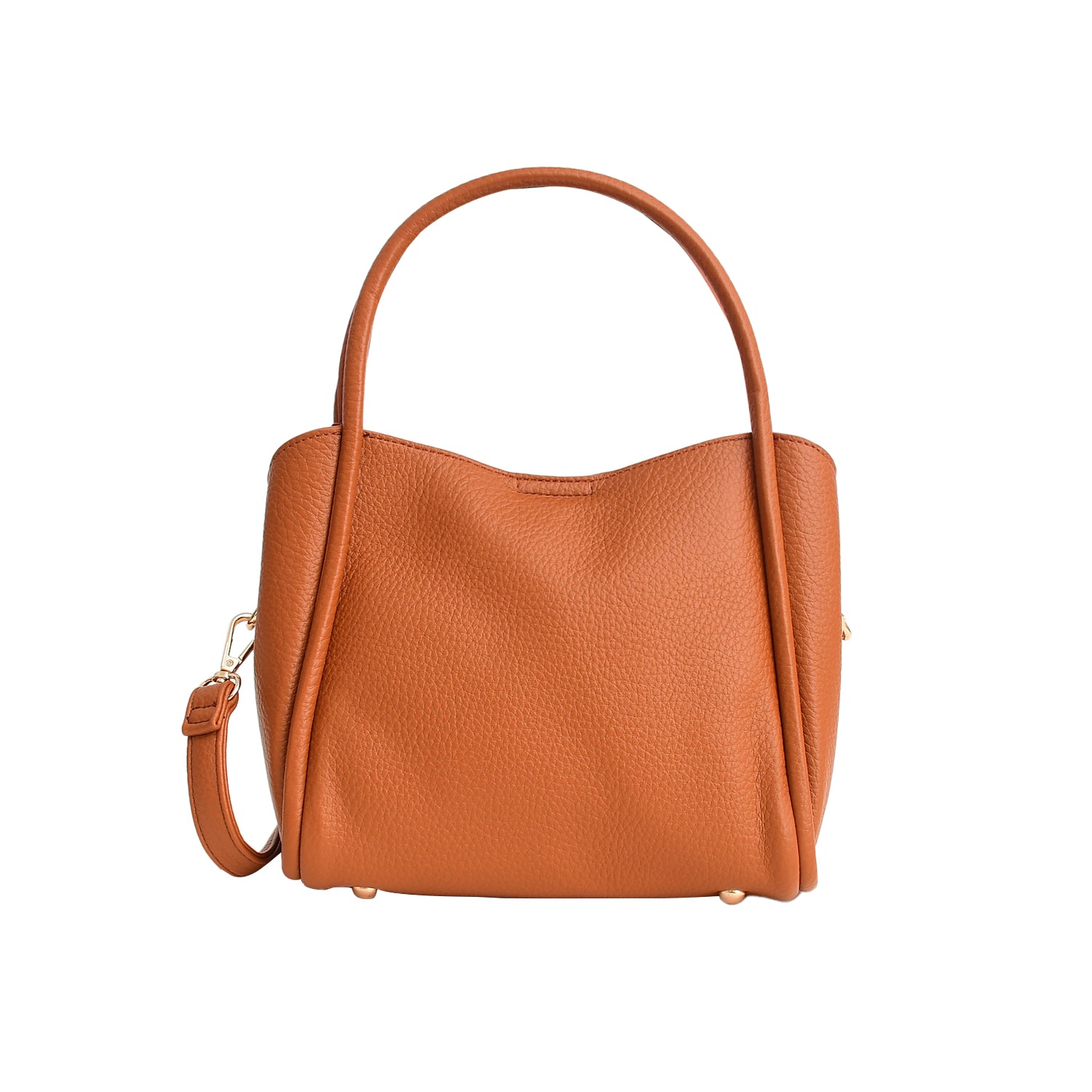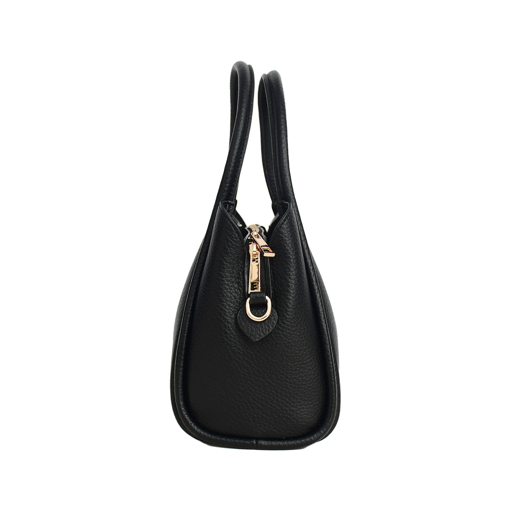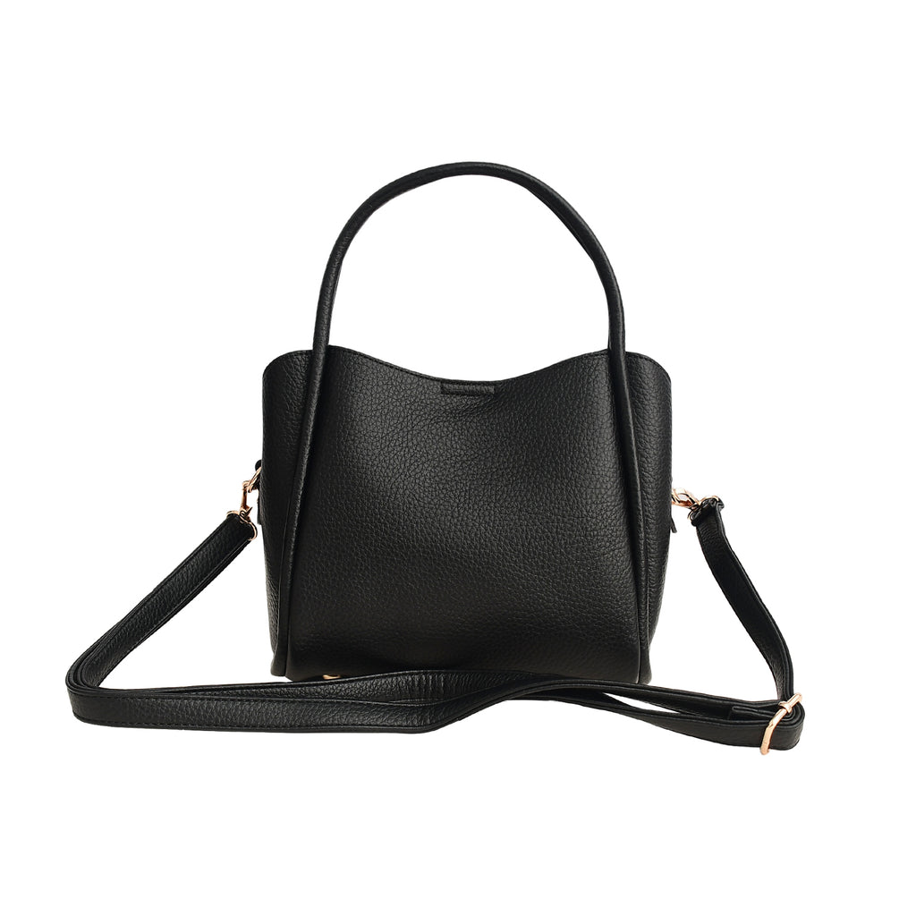 • Dual top handles and adjustable, detachable crossbody strap.